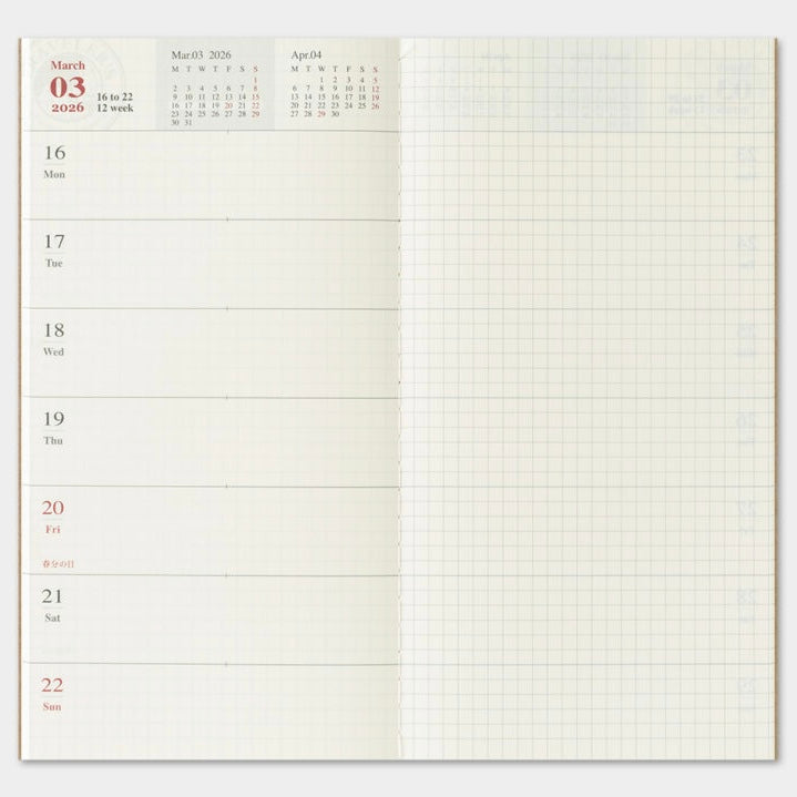 Þetta er 2025 útgáfan af forprentuðu dagbókarvinnvolsi með hverri viku á vinstri síðu og rúðustrikaðri síðu á móti fyrir to do listana eða eitthvað annað gagnlegt.